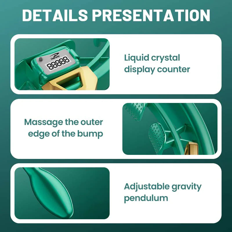 VIBRAČNÉ UZLY – Obruč je vybavená 16 vibračnými kĺbmi a celkovo 896 masážnymi uzlami a poskytuje precíznu stimuláciu oblasti pása. Uzly napodobňujú profesionálne masážne techniky, uvoľňujú napätie a aktivujú brušné svaly. Vibrácie sú vyvážené, aby sa zabezpečilo pohodlie a zároveň sa maximalizuje účinok každej rotácie, čím sa zaručuje uspokojivý a povzbudzujúci zážitok pri každom sedení.