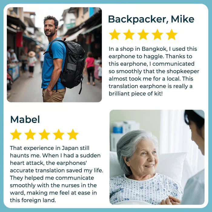 Naše slúchadlá do uší vám umožňujú jednoducho prekladať a komunikovať s ostatnými v reálnom čase. Jednoducho podáte jedno slúchadlo partnerovi a ono preloží konverzáciu medzi vami.