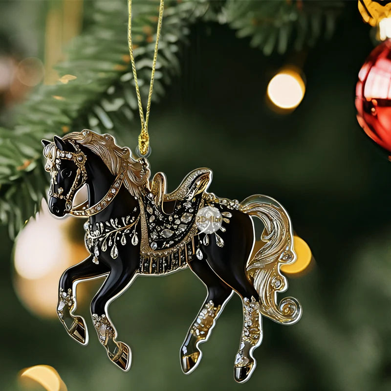 MOTÍV ZLATÉHO KONA S LUXUSNÝM EFEKTOM: Jeho dynamická silueta zobrazuje cválajúceho koňa s bohatou zlatou povrchovou úpravou. Kombinácia elegancie a pohybu vytvára silný vizuálny dojem. Tento pútavý motív vylepší každodenné doplnky a je ideálny na tašky, kľúče alebo vianočné dekorácie.