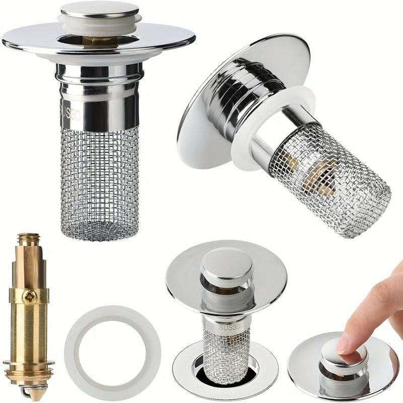【VYLEPŠENÝ DIZAJN 2 V 1】Výsuvné sitko do kúpeľňového umývadla má vo vnútri kôš proti upchávaniu, ktorý kombinuje zátku a sitko v jednom. Kôš proti upchávaniu zachytáva vlasy a iné nečistoty a bráni im vniknutiu do odtoku. To pomáha udržiavať efektívny odtok a predchádza problémom s upchávaním.