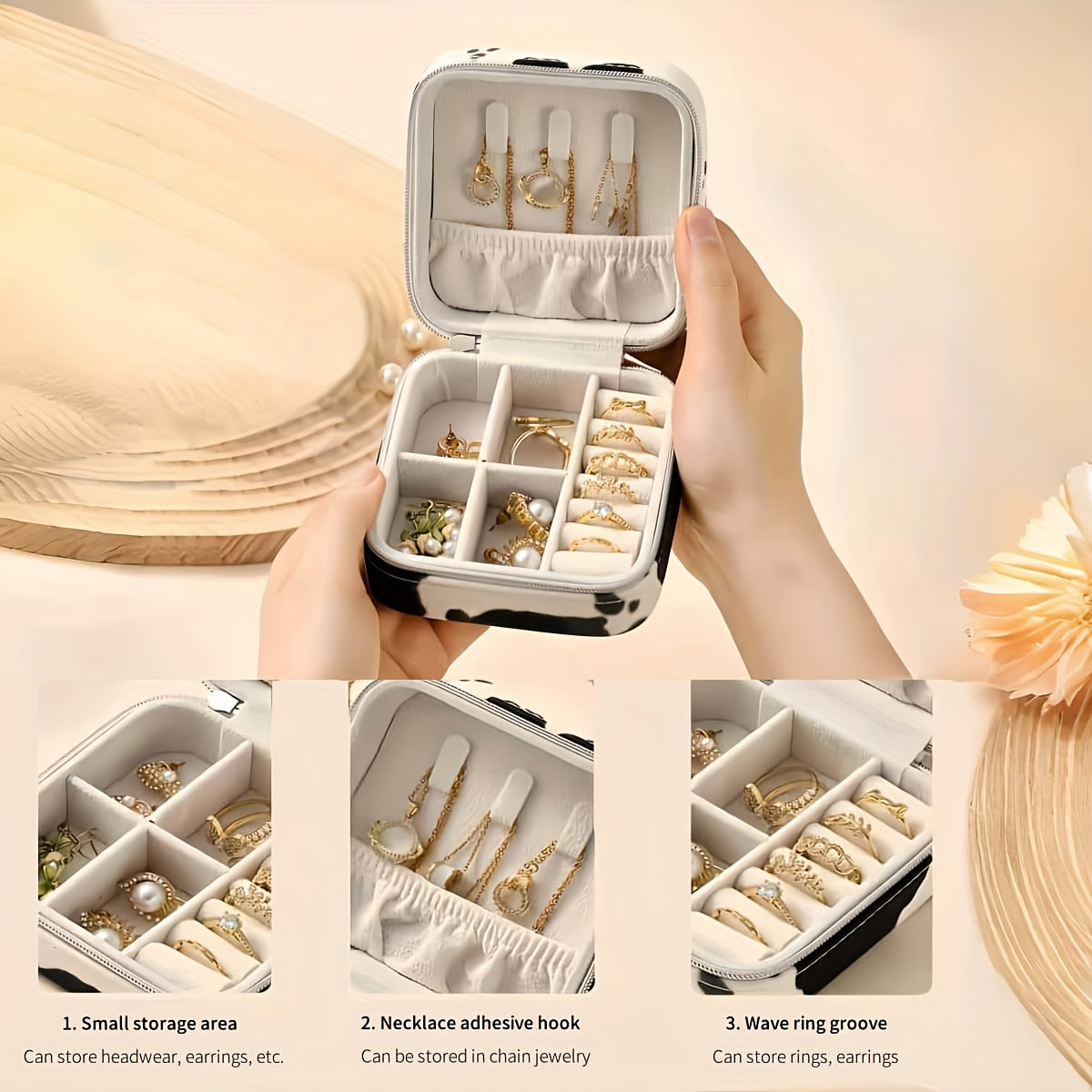 1 bucată cutie portabilă pentru bijuterii, poate depozita accesorii, mică și elegantă, cutie de păstrare pentru cercei, inele și coliere, accesoriu de  , potrivită pentru petreceri, vacanțe, fotografii și sărbători, cadou pentru mamă sau prietenă, cutii bijuterii Detaliile articolului 1