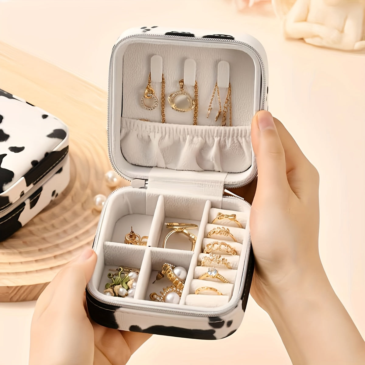 【💎 Veľmi vhodné na cesty aj domáce uskladnenie!】Kožená šperkovnica