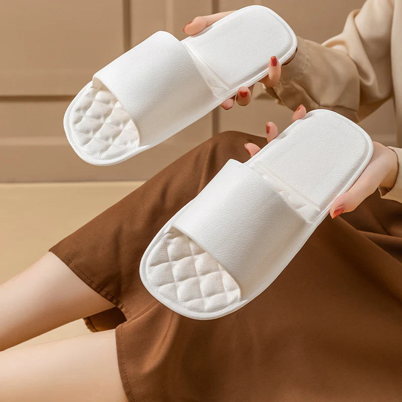 HYGIENICKÁ JEDNORAZOVÁ MOŽNOSŤ – Tieto papuče sú jednorazové a pomáhajú udržiavať čistotu tým, že zabraňujú krížovému používaniu a minimalizujú hygienické problémy. Ponúkajú bezpečné riešenie pre spoločné zariadenia, ako sú telocvične, bazény alebo hotely. Pohodlie jednorazového použitia znižuje potrebu údržby a zároveň zaisťuje bezpečné a spoľahlivé nosenie vo vlhkých alebo mokrých priestoroch.