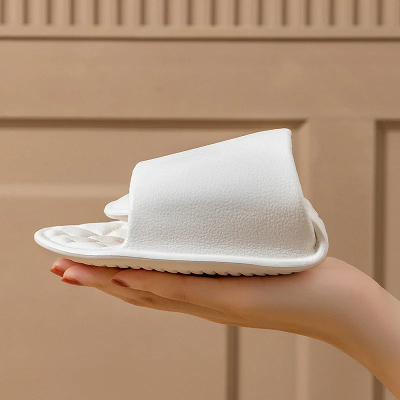 MÄKKÝ ZVRŠOK – Mäkký zvršok zaisťuje ľahké a pohodlné nosenie. Papuče sú navrhnuté tak, aby si zachovali svoj tvar aj pri ohnutí, čím sa predchádza nepohodliu spôsobenému tvrdou obuvou. Vďaka tomu sú obzvlášť praktické pri aktivitách, ako je sprchovanie, návštevy kúpeľov alebo používanie vo verejných kúpeľoch, kde je potrebná jednorazová, no zároveň pohodlná obuv.