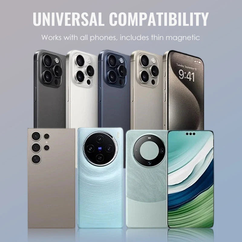 BEZPEČNÝ MAGNETICKÝ DRŽIAK – Nešikovná manipulácia s klipom môže viesť k frustrácii počas dôležitých okamihov. Robustný magnetický dizajn drží vaše zariadenie na mieste aj počas pohybu. Rýchlo sa pripája a odpája, čo vám umožňuje nahrávať na cestách. Súčasťou balenia je ultratenký magnetický krúžok pre kompatibilitu s väčšinou nemagnetických telefónov. Zacvakávací uzamykací mechanizmus zaisťuje, že sa zariadenie nebude kývať.