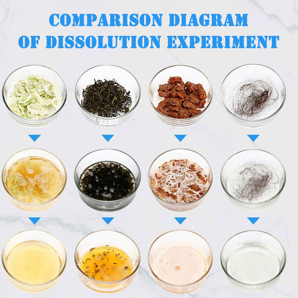 Rozkladá upchatia: Dokáže ľahko rozložiť bežné upchatia, ako sú vlasy, zelenina, ovocie, zvyšky ryže, zvyšky papiera, mäso atď., a rýchlo vyčistiť potrubie.