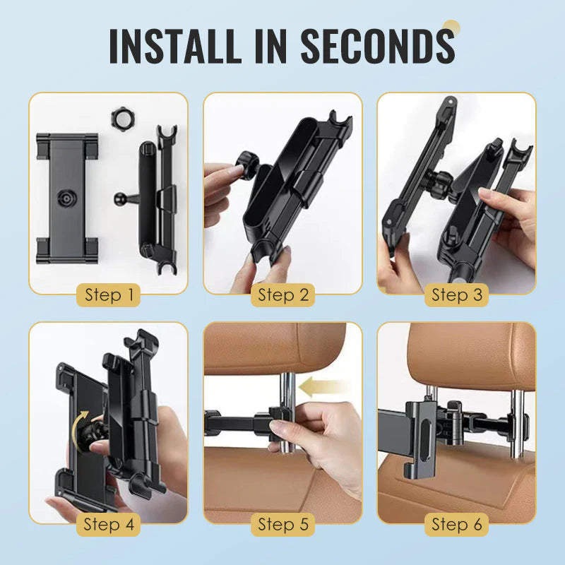 JEDNODUCHÁ INŠTALÁCIA - Jednoducho ho pripevnite na tyče opierky hlavy v priebehu niekoľkých sekúnd. Nie sú potrebné žiadne nástroje ani demontáž opierky hlavy, vďaka čomu je neuveriteľne pohodlné ho kedykoľvek nastaviť alebo presunúť medzi rôznymi vozidlami.