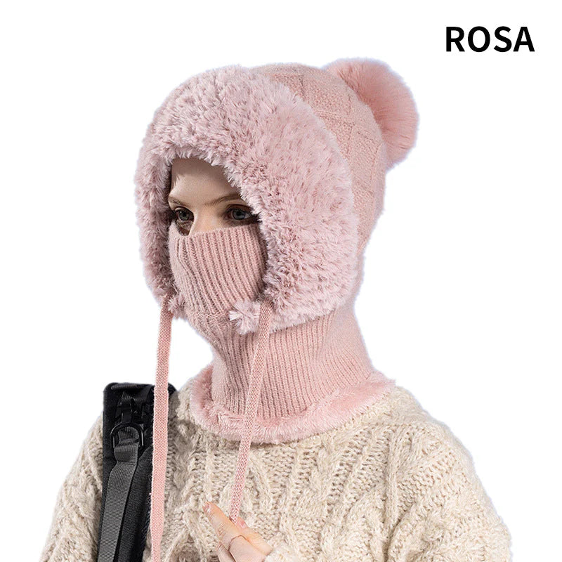 Multifunkčný dizajn tri v jednom - Táto štýlová dámska súprava kombinuje čiapku, rúško a šatku v jednom, čím poskytuje teplo a pohodlie. Tkanina šetrná k pokožke zaisťuje pohodlie pri nosení, zatiaľ čo skladací šilt a nastaviteľné šnúrky umožňujú prispôsobenie sa akémukoľvek tvaru tváre.
